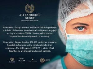Alexandrion Group, cel mai mare producător și distribuitor de băuturi spirtoase din România, donează 100.000 de măști medicale de protecție spitalelor din România, angajaților și familiilor colaboratorilor săi, pentru a susține lupta împotriva COVID-19.