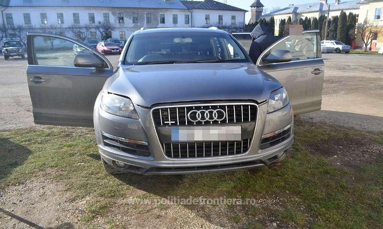 Ieri, 30 decembrie a.c., lucrători din cadrul Serviciului Teritorial al Poliției de Frontieră Maramureș au identificat pe timpul unei misiuni, în staționare, pe o stradă din localitatea Cavnic, județul Maramureș, un autoturism marca Audi Q7, care aparținea cetățeanului român V. L., în vârstă de 62 de ani, domiciliat în județul Maramureș.