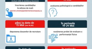 Inspectoratul de Jandarmi Judeţean Constanţa recrutează şi selecţionează candidaţi pentru instituţiile de învăţământ postliceal ale Jandarmeriei Române. Doreşti să devii jandarm? Mai ai 7 zile pentru a valorifica una dintre cele 700 de şanse de a deveni unul dintre elevii şcolilor de subofiţeri ai Jandarmeriei. Dacă eşti absolvent de liceu …