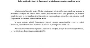 Mai mult »Năvodari: Programul privind casarea autovehiculelor uzate. Precizări de la Agenția Fondului pentru Mediu