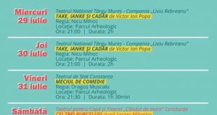 „Meciul de comedie – spectacol de improvizație”, vineri, 31 iulie, ora 21:30, „Săftița”, sâmbătă, 1 august, ora 21:30, „Nu sunt eu”, duminică, 2 august, ora 21:30, Parcul Arheologic Stagiunea estivală „Be.Safe- BEst Summer Art Fest Constanța 2020”, organizată de Teatrul de Stat Constanța, cu sprijinul Primăriei Municipiului Constanța și al Consiliului …