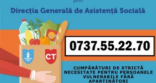 Echipe ale Direcției Generale de Asistență Sociale sunt disponibile NONSTOP la numărul de telefon 0737.55.22.70, pentru a face cumpărăturile de strictă necesitate bătrânilor fără niciun ajutor. Numărul de telefon NONSTOP 0737.55.22.70 este valabil doar pentru persoanele vulnerabile care nu au aparținători. Echipele care fac cumpărăturile au legitimație de serviciu și …