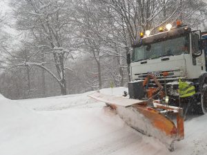 Se acționează cu material antiderapant, iar echipajele de poliție rutieră sunt prezente pentru a preveni producera unor evenimente nedorite.