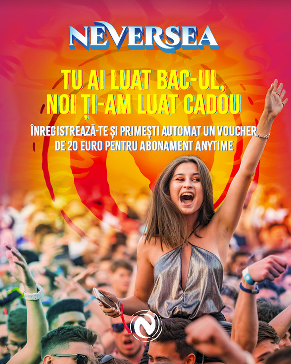 Organizatorii festivalului Neversea vin cu vești bune pentru absolvenții care vor sa participe la campania „BAC de 10”. Toți cei care au promovat examenul de Bacalaureat pot cumpăra începând de astăzi abonamente Anytime pentru festivalul Neversea, folosind voucherul valoric de 20 de euro.  Prețul unui abonament Anytime la festivalul Neversea, cu voucherul aplicat, va fi de 116 euro + taxe, din prețul final de 136 euro + taxe.