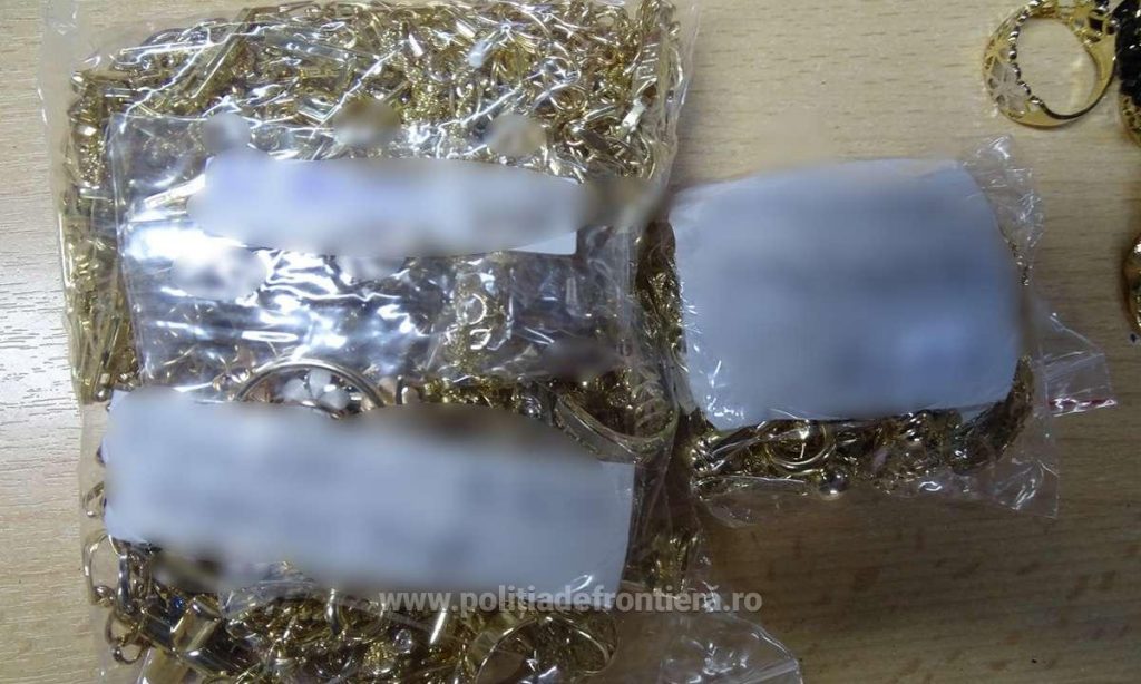 Cu această ocazie, colegii noștri, au descoperit în urma controlului efectuat asupra mijlocului de transport, într-un loc special amenajat în compartimentul motor, cinci pachete ce conțineau mai multe bijuterii din metal de culoare galbenă și albă, presupus a fi aur.