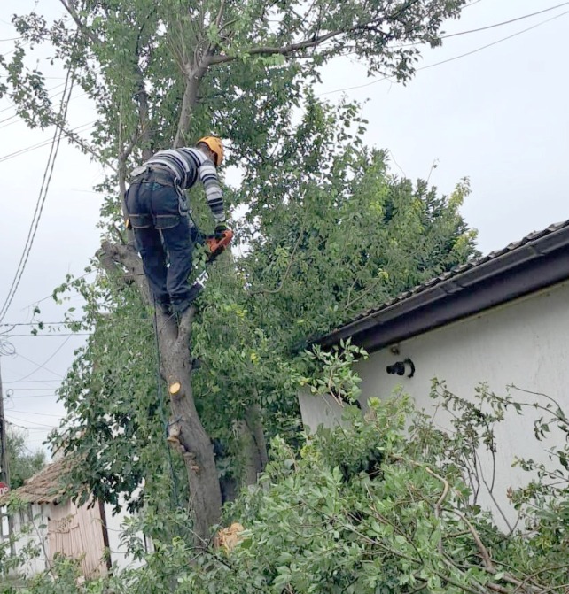 Echipele de tăietori și alpiniști utilitari acționează preventiv pentru înlăturarea arborilor și crengilor care prezintă pericol de prăbușire.
