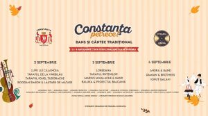 În perioada 2-4 septembrie, celebrăm dansul și cântecul traditional. Evenimentul organizat de Direcția Cultură, Educație, Sport, Turism din cadrul Primăriei Municipiului Constanța va avea loc în parcarea de la Plaja Modern. Zeci de artiști și dansatori care vor urca pe scenă începând cu ora 17:00.
