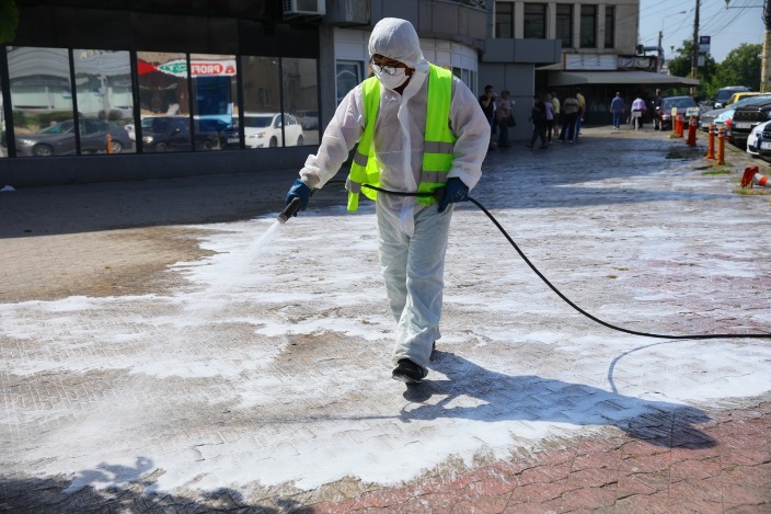 Pentru dezinfecție se folosește un detergent profesional care are proprietăți de spalare și degresare puternică a străzilor fără a afecta mediul înconjurător. Produsul este ecologic, având o biodegradabilitate primară de peste 90%.