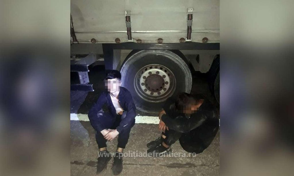 Procedând la verificarea mijlocului de transport, polițiștii de frontieră au descoperit ascunse, pe osia semiremorcii, două persoane de sex masculin, fără documente de identitate asupra lor.