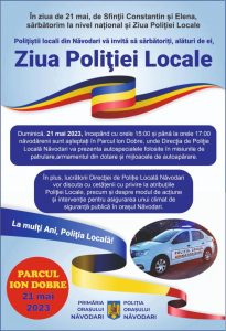 Duminică, 21 mai, locuitorii orașului Năvodari sunt așteptați în Parcul Ion Dobre, începând cu ora 15.00 pentru a sărbători ziua Poliției Locale.