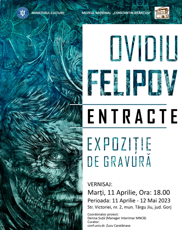 Conf. univ. dr. Ovidiu Felipov din cadrul Facultății de Arte a Universității Ovidius din Constanța (UOC) expune o colecție personală de lucrări de gravură, cu titlul „Entracte”, la Muzeul Național „Constantin Brâncuși” din Târgu Jiu, în perioada 11 aprilie – 12 mai 2023.