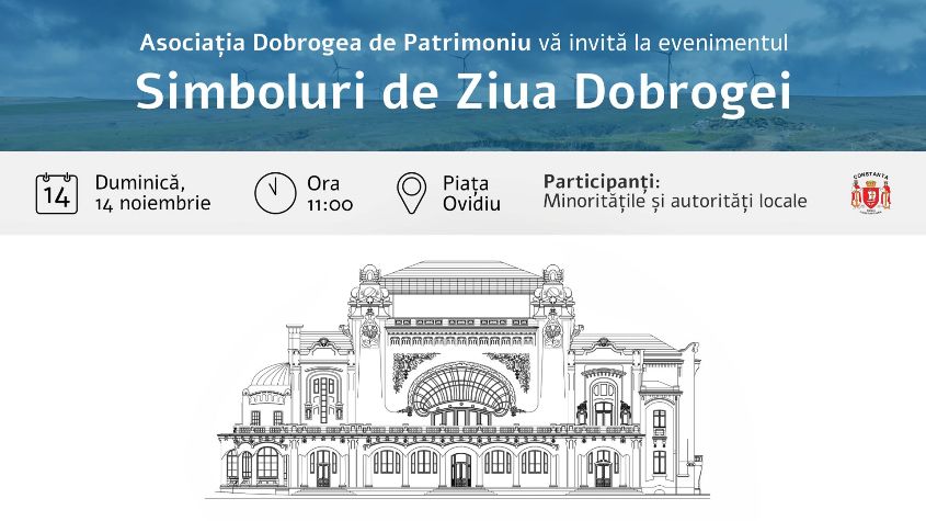 Asociația Dobrogea de Patrimoniu vă invită duminică, 14 noiembrie, la ora 11.00, la evenimentul ”Simboluri de Ziua Dobrogei”. Organizată în Piața Ovidiu, în parteneriat cu Primăria Municipiului Constanța, manifestarea marchează Ziua Dobrogei și pune accent pe multiculturalitatea din această regiune.