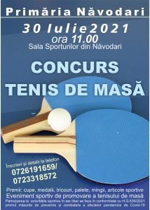 Primăria Orașului Năvodari organizează, vineri, 30 iulie, un concurs de promovare a tenisului de masă. Evenimentul sportiv va avea loc la Sala Sporturilor din Năvodari, începând cu ora 11.00.