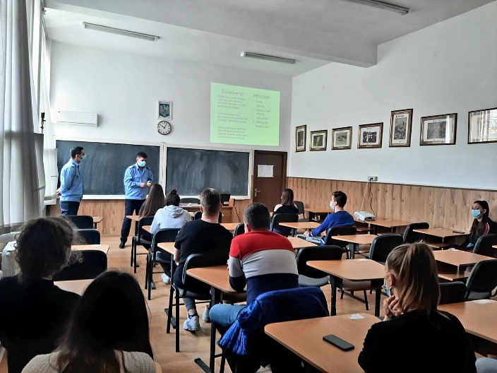 le-au prezentat elevilor din clasele a XII-a aspecte cu privire la principalele fapte antisociale care pot fi săvârşite de către aceştia, implicaţiile pe care le au asupra lor, principalele genuri de fapte cu caracter infracţional sau contravenţional comise în incinta şi în zona adiacentă unităţilor şcolare,  dar şi care sunt pedepsele prevăzute de lege în cazul săvârşirii acestor fapte.