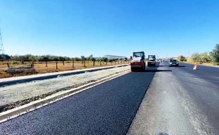 Se lucrează la turnarea celui de-al doilea strat de asfalt care va permite traficul greu de vehicule de mare tonaj fără deteriorarea tramei stradale