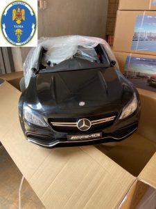 În data de 14 iunie 2023, inspectorii vamali din cadrul Biroului Vamal de Frontieră Constanța Sud – Direcția Regională Vamală București, au efectuat controlul fizic asupra mărfurilor aflate în trei containere sosite din China, aparținând unei societăți comerciale cu sediul în Ucraina și au descoperit 700 bucăți mașinuțe cu acumulator, pentru copii, susceptibile de a aduce atingere dreptului de proprietate intelectuală pentru mărcile,,MERCEDES’’ și ,,McLAREN’’.