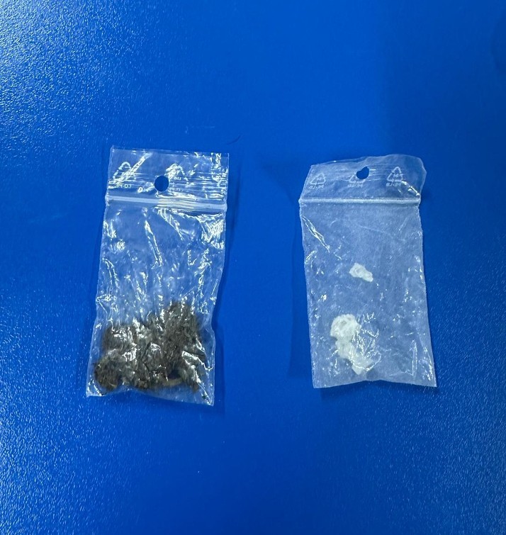 În urma controlului corporal, asupra unuia dintre minori, cu vârsta de 17 ani, jandarmii au găsit două pliculețe din plastic, unul conținând o substanță cristalină de culoare albă și celălalt o substanță vegetală de culoare verde-oliv.