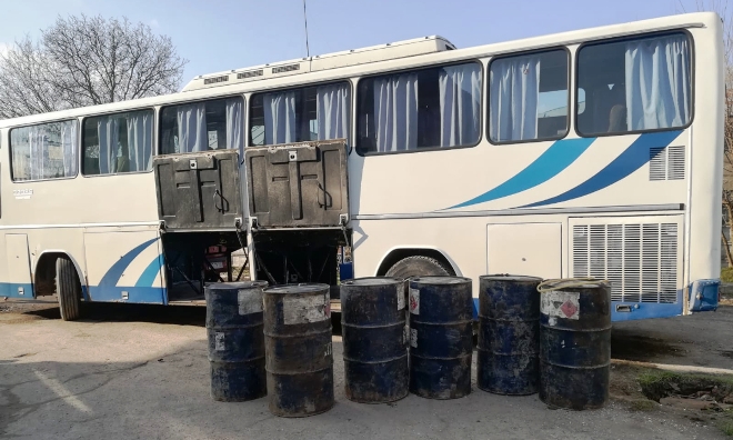 În urma verificării mijlocului de transport, poliţiştii de frontieră au descoperit în compartimentul pentru bagaje șase butoaie din tablă, cu o capacitate de 200 litri fiecare și în care se afla produs petrolier cu miros specific de motorină, pentru care persoana în cauză nu a putut prezenta documente legale.