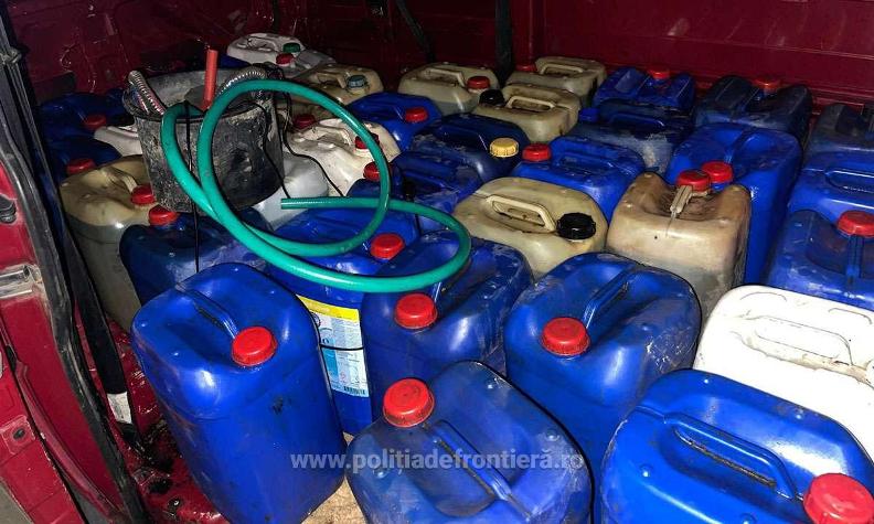 În urma controlului efectuat asupra mijlocului de transport, în interiorul acestuia au fost descoperite 39 de recipiente din plastic ce conțineau un lichid cu miros specific de produs petrolier.