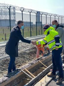 „Am fost astăzi pe șantierul de lucrări de la drumul spre Corbu pentru a vedea stadiul investiției. Se lucrează în prezent la amenajarea trotuarului și a pistei pentru biciclete, se cofrează și se toarnă beton pentru construirea rigolelor de scurgere.
