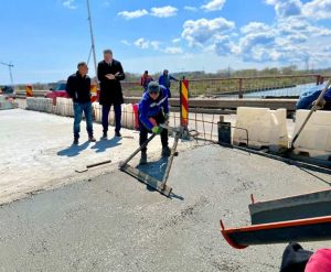 „Am verificat astăzi stadiul lucrărilor pentru reabilitarea și supralărgirea podului peste Ecluză. În prezent se toarnă plăcile de racordare, fundații, grinda parapet de pe zidurile întoarse, precum și fundația adâncită de parapet.