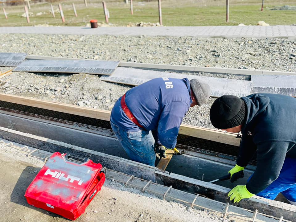 Zilele acestea se lucrează la realizare cofrag parte superioară elevație, se montează borduri și se realizează terasamentul pentru pista de bicicliști și trotuar.