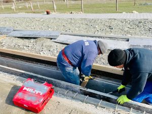 Zilele acestea se lucrează la realizare cofrag parte superioară elevație, se montează borduri și se realizează terasamentul pentru pista de bicicliști și trotuar.