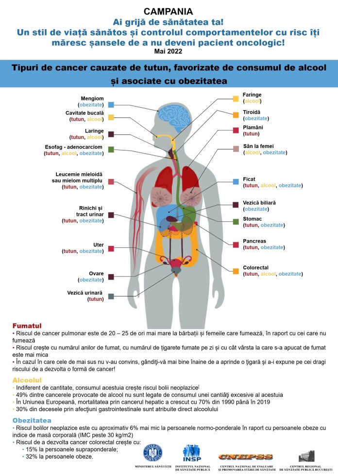 Desfășurată sub sloganul „Ai grijă de sănătatea ta! Un stil de viață sănătos și controlul comportamentelor cu risc îți măresc șansele de a nu deveni pacient oncologic!”, campania își propune să ajute publicul, în această lună, să conștientizeze mai bine asupra prevenției acestei boli.