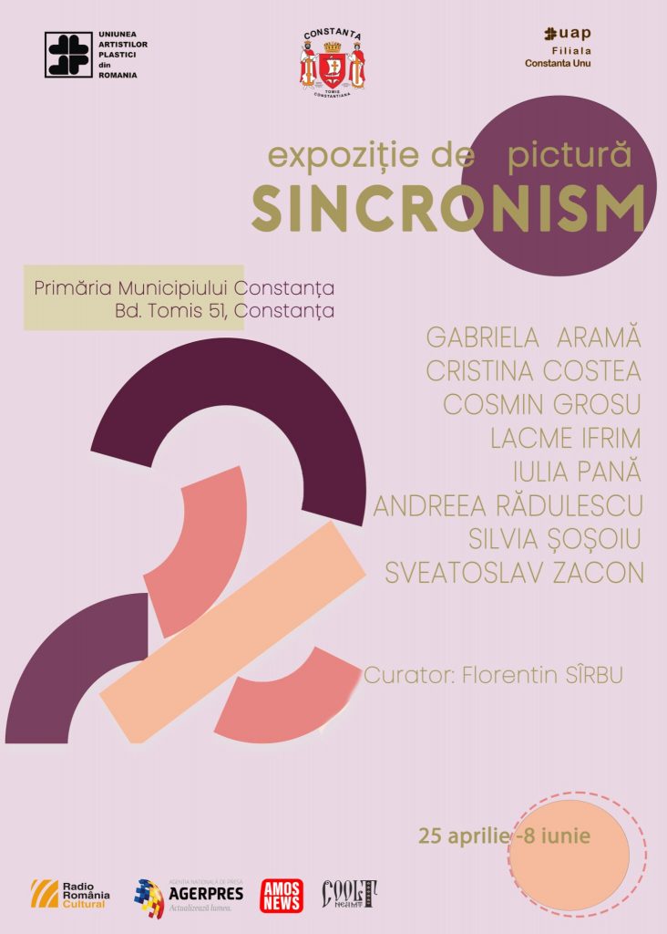 Primăria Constanța găzduiește, până pe 8 iunie, expoziția „Sincronism”, organizată sub egida Uniunii Artiștilor Plastici din România, filiala Constanța UNU. Sincronismul este tema care a adunat opt artiști talentați, cu stiluri și viziuni artistice diferite, dar cu aceeași pasiune și traseu comun în lumea artei.