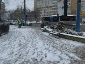 Pe străzile din municipiul Constanța se acționează în continuare cu 31 de utilaje care împrăștie material antiderapant și îndepărtează zăpada de pe carosabil.