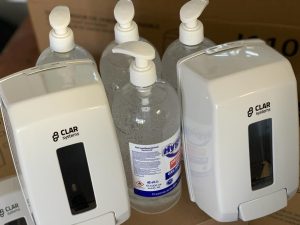Primăria Municipiului Constanța a început astăzi distribuirea dispenserelor cu dezinfectant pentru mâini în scările de bloc.