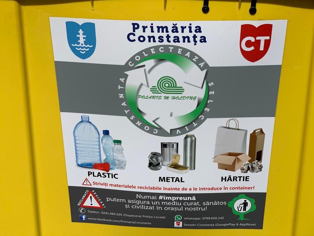 Primăria Municipiului Constanța recomandă în continuare locuitorilor orașului să separe deșeurile reciclabile de cele menajere și să le depoziteze în platforme în secțiunile special amenajate și inscripționate corespunzător.