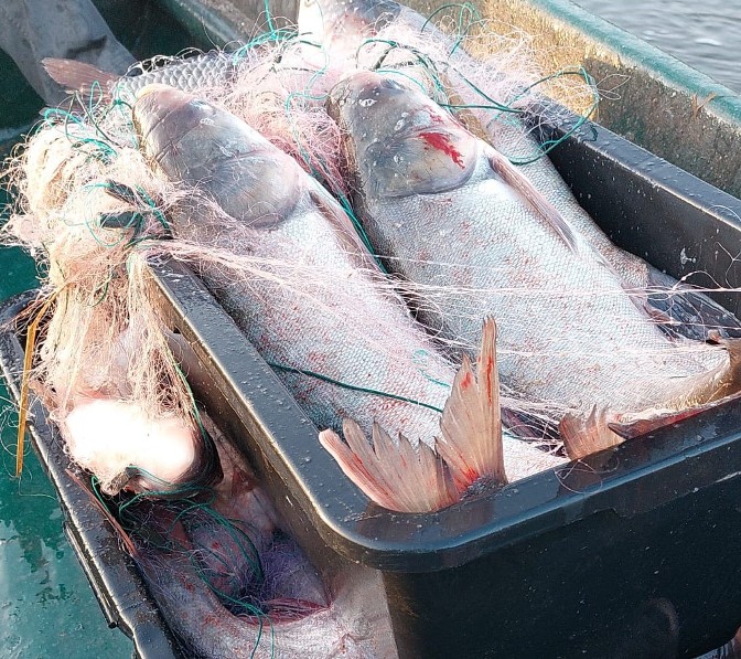 Cei doi bărbaţi amplasaseră pe lac 250 de metri de setcă monofilament, utilizând în acest scop o ambarcaţiune neînregistrată. Jandarmii au recuperat uneltele de pescuit abandonate şi din acestea peste 40 de kilograme de crap fitofag (novac) şi caras.