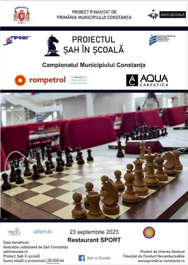 Proiectul „Șah în școală” este promovat de Asociația Județeană de Șah în parteneriat cu Inspectoratul Școlar Județean Constanța, Direcția Județeană de Tineret și Sport, Palatul Copiilor Constanța și finanțat de Primăria Municipiului Constanța.