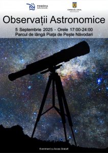Năvodărenii sunt invitați vineri, 5 septembrie, între orele 17:00 – 24:00, la o seară specială de explorare a cerului, în Parcul de lângă Piața de Pește.