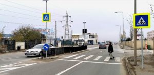 Lucrările de amenajare a trecerii de pietoni prevazută cu scuar median de pe bulevardul Aurel Vlaicu, înainte de sensul giratoriu cu DN3C (varianta Ovidiu) au fost finalizate.