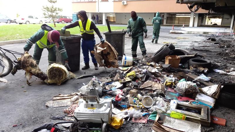 Echipele de curățenie au acționat și astăzi pentru a elimina, pe cât posibil, urmele incendiului. S-au strâns containere întregi de obiecte distruse de flăcări. În continuare, cele trei scări ale blocului T3 sunt păzite atât de poliţiştii locali, cât şi de cei de la IPJ Constanța, iar în imobil nu se intră decât cu aprobarea acestora.