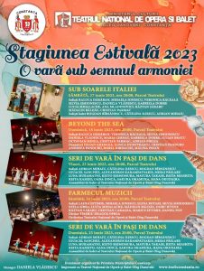 Programul este următorul:Vineri și duminică: SERI DE VARĂ ÎN PAȘI DE DANS, spectacole realizate sub forma unor gale de balet.Sâmbătă: FARMECUL MUZICII, o seară de arii, duete și coruri celebre din opere și operete fermecătoare.