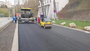 În paralel, se recondiționează cu asfalt zona pietonală, după ce au fost înlocuite toate bordurile pentru a fi ridicate la cotă.