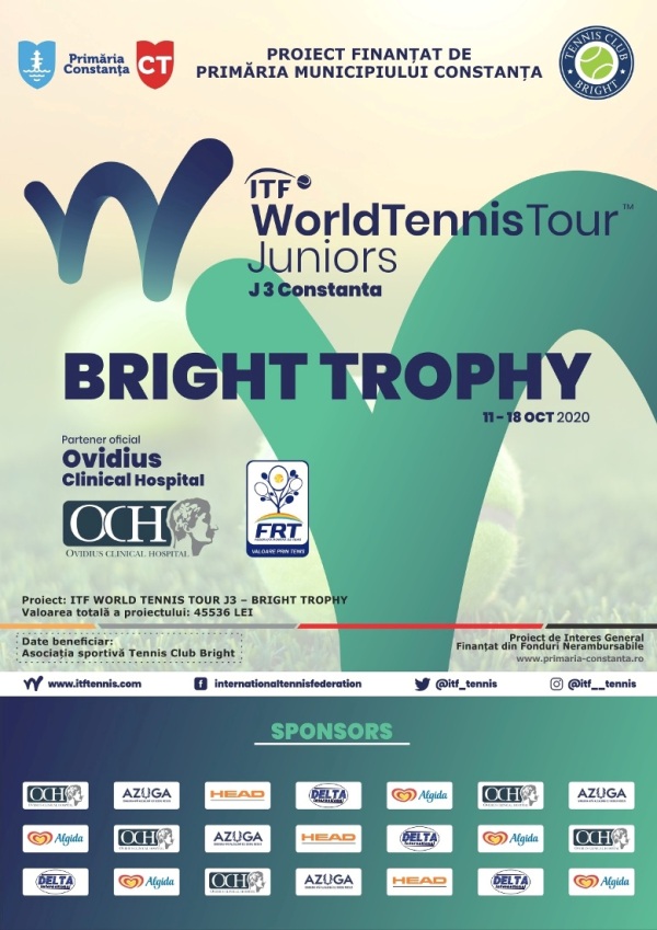 ITF WORLD TENNIS TOUR J3 – BRIGHT TROPHY , o competiţie la care participă nu mai puţin de 120 de jucători veniţi din 17 de ţări, atât din Europa cât și din America, este finanțat de Primăria Municipiului Constanţa.