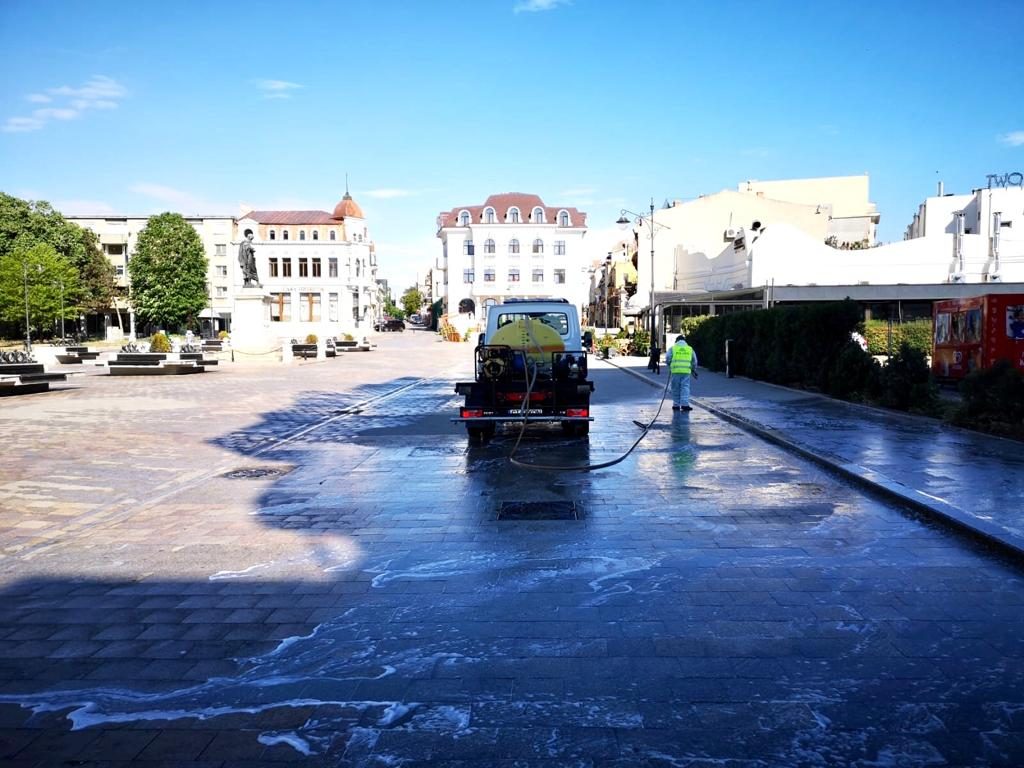 Primăria Municipiului Constanța acționează permanent pentru dezinfecția străzilor, trotuarelor, aleilor și băncilor din parcurile din oraș.