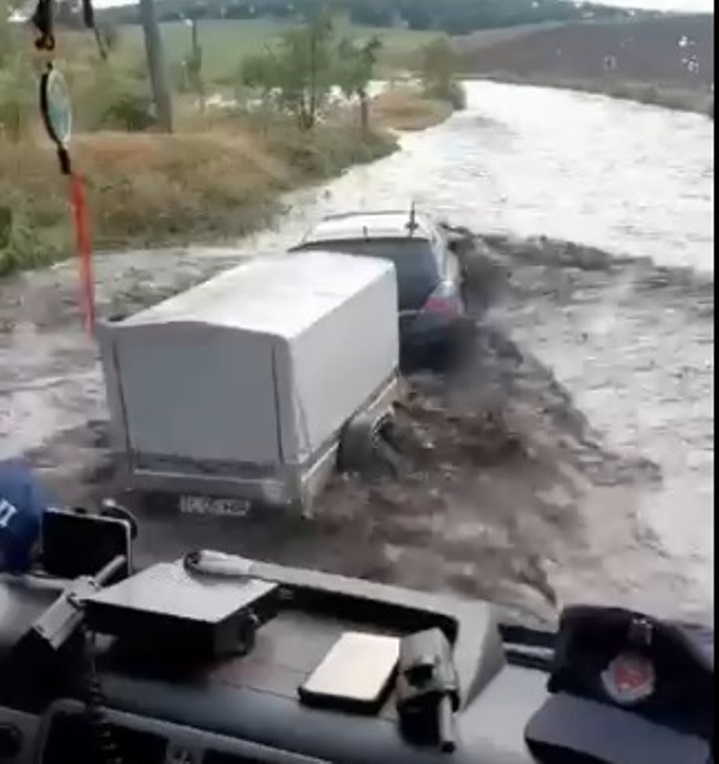 În urma fenomenelor meteo extreme produse în această după-amiază, în zona localității Horia din jud. Tulcea s-a format o viitură în care au fost surprinse aproximativ 12 autoturisme și un microbuz.