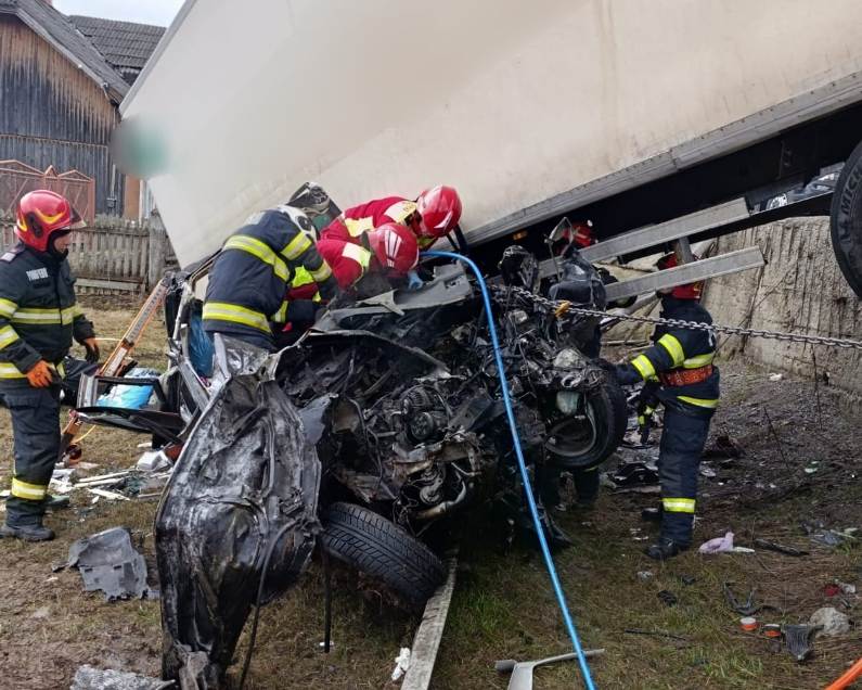 Accident mortal pe DN17: Un șofer și-a pierdut viața în urma coliziunii dintre un TIR și un autoturism.foto
