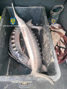 În urma controlului, polițiștii au identificat în portbagajul autoturismului două exemplare de sturion, din specia păstrugă.