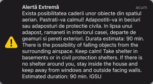 Ca urmare a faptului că sistemele de monitorizare și supraveghere radar ale Ministerului Apărării Naționale au semnalat ținte aeriene care au evoluat pe diferite traiecte de zbor în spațiul aerian ucrainean, în proximitatea spațiului aerian național, Centrul Național Militar de Comandă (nucleu) a notificat Inspectoratul General pentru Situații de Urgență, în jurul orei 23, privind instituirea măsurilor de alertare a populației în zona de graniță a județelor Tulcea și Galați.