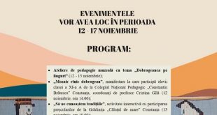Mai mult »„Zilele Dobrogei”: Muzeul de Artă Populară Constanța a pregătit, în perioada 12-17 noiembrie, o suită de manifestări de culturale și educative pentru publicul larg
