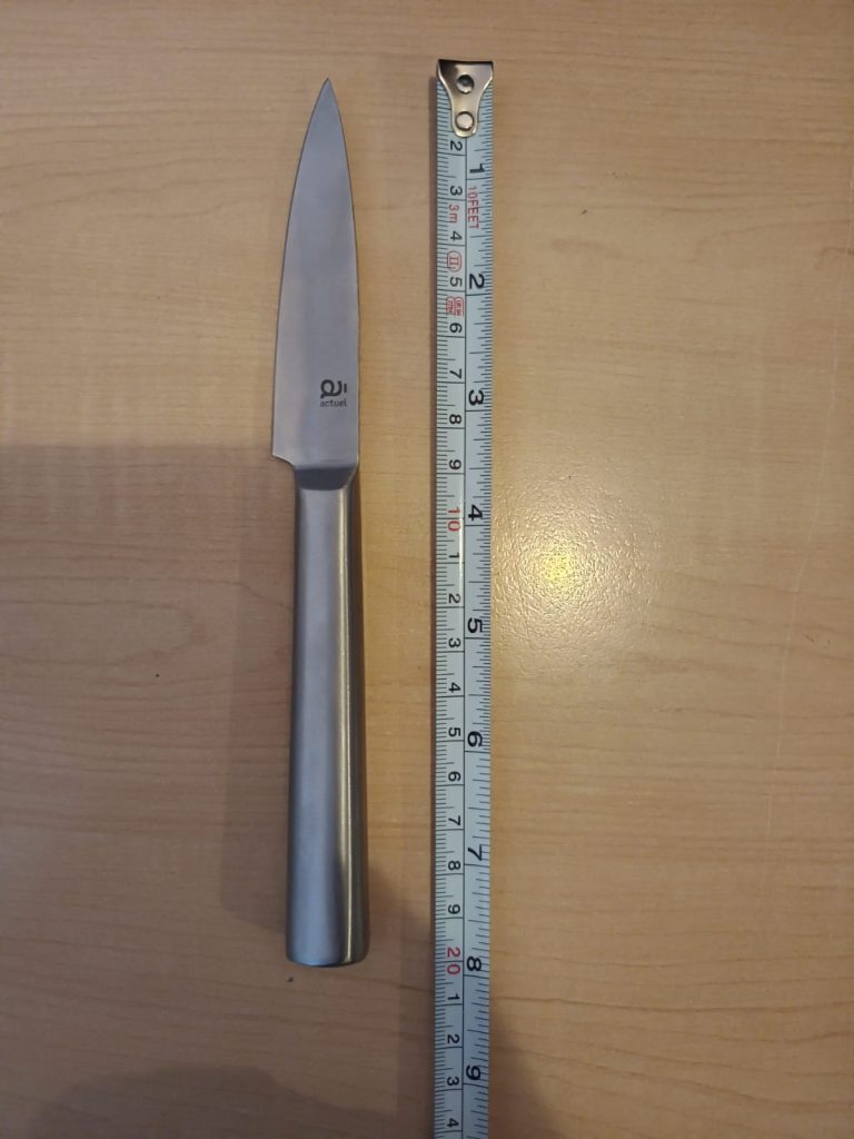 În momentul în care a fost oprit de jandarmi, bărbatul a scos din buzunarul de la spate un cuțit de aproximativ 20 cm lungime.