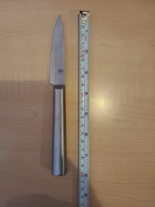În momentul în care a fost oprit de jandarmi, bărbatul a scos din buzunarul de la spate un cuțit de aproximativ 20 cm lungime.