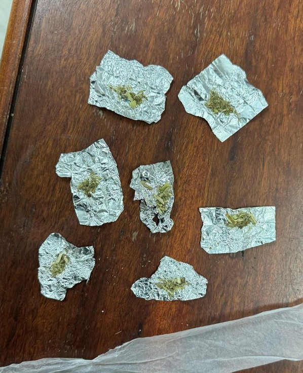 În urma controlului corporal jandarmii au descoperit asupra sa, în buzunarul bluzei, șapte pachețele de staniol care conțineau o substanță vegetală de culoare verde-oliv, susceptibilă a avea efecte psihoactive.