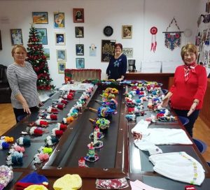 Ca o adevărată echipă și cu multă dăruire, vârstnicii au realizat adevărate minunății cu propriile mâini și au terminat de pregătit pachețelele care vor ajunge la copii: icoane pictate pe sticlă, căciulițe și totoși împletiți, costume naționale, dulciuri, jucării, îmbrăcăminte și materiale de lucru.